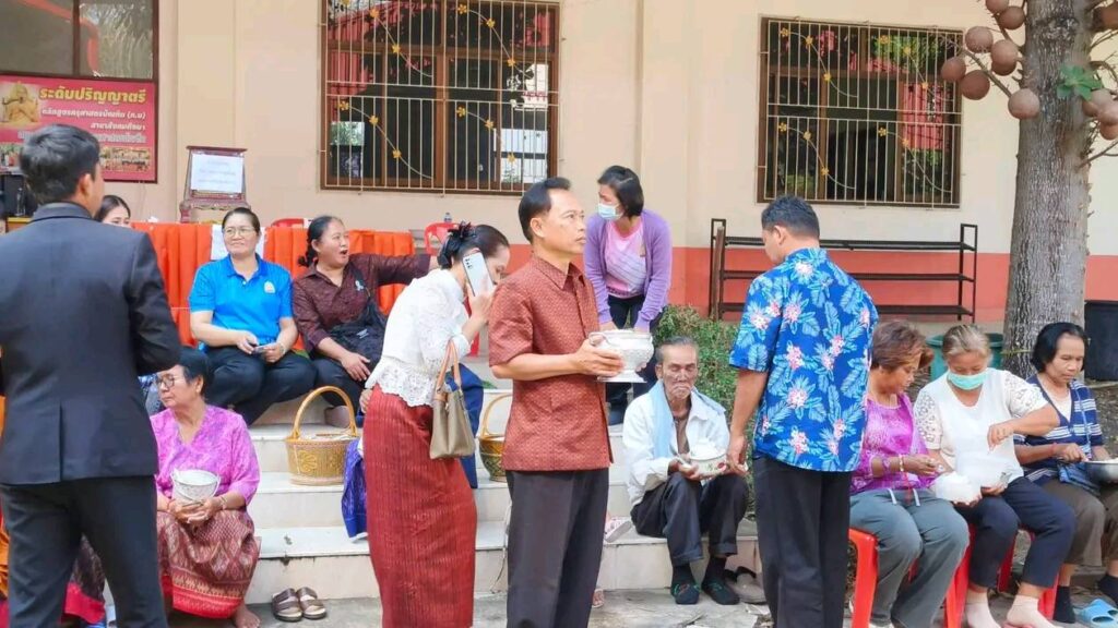 ✍️ในการนี้ นายพลนภัส แสงศรี ผู้อำนวยการสำนักงานวิทยาเขตสุรินทร์ มหาวิทยาลัยมหาจุฬาลงกรณราชวิทยาลัย ร่วมทำบุญตักบาตร แด่พระนิสิตที่เข้าร่วมในโครงการฯ จำนวน ๔๐๐ กว่ารูปอีกด้วย