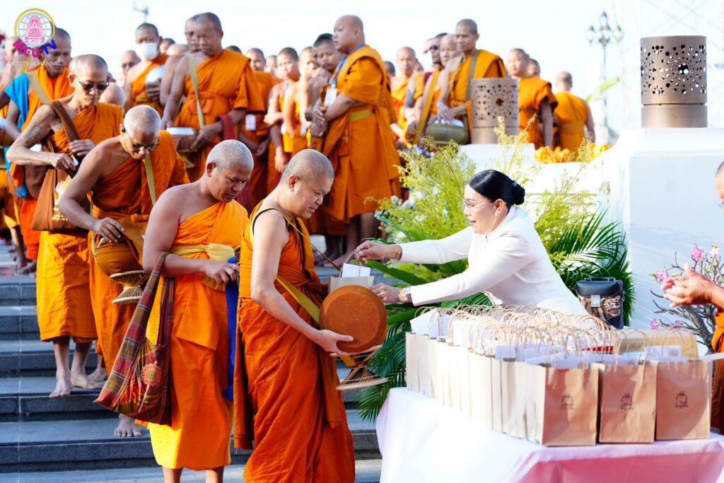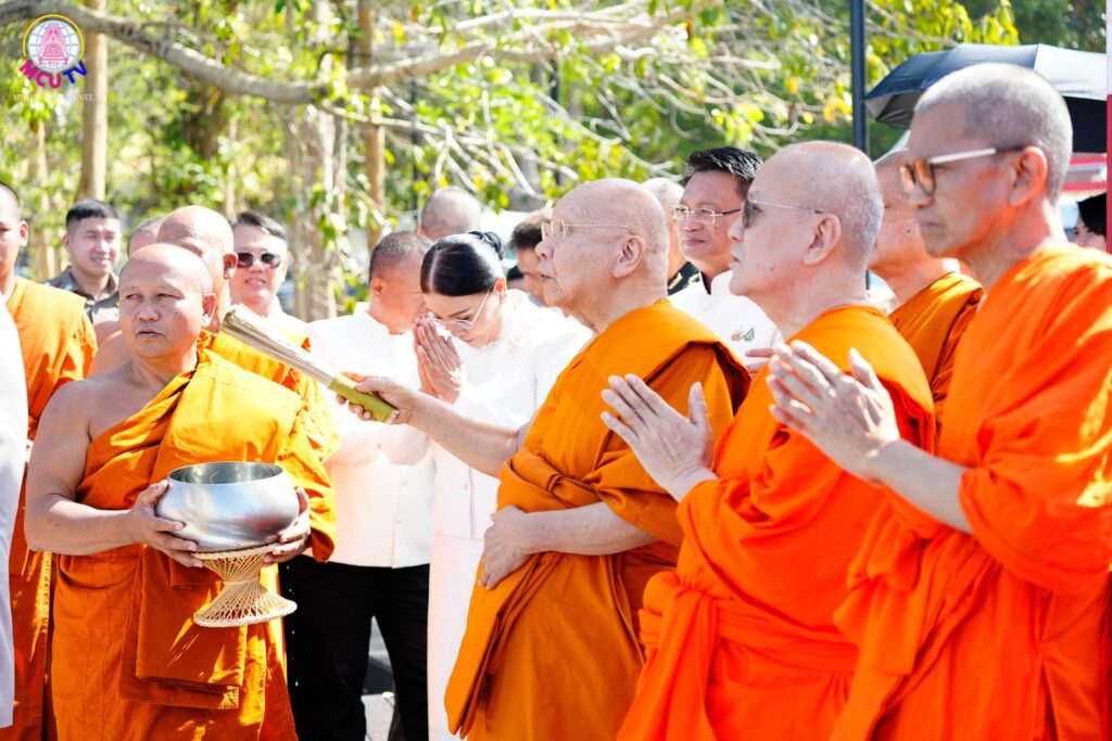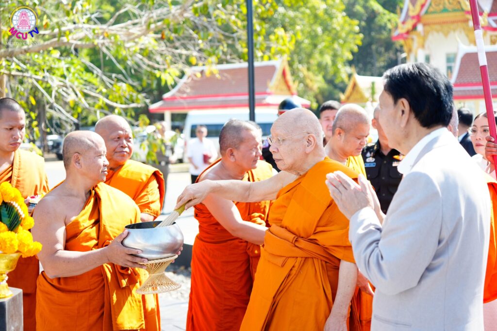 กิจกรรม เริ่มต้นขึ้นในช่วงเช้า เวลา 07.00 น. ด้วยพลังศรัทธาของคณะผู้บริหาร คณาจารย์ เจ้าหน้าที่ นิสิต และพุทธศาสนิกชน นำโดย ดร.นวรัตน์ เพชรมาก ร่วมกันทำบุญตักบาตรแด่พระสงฆ์จำนวน 600 รูป พิธีเชิญธงชาติ ธงธรรมจักร ธง มจร และพิธีประดิษฐานนางปทุมมัจฉา จากนั้นพระสงฆ์ทั้ง 600 รูป ได้ร่วมสวดมาติกาบังสุกุลรับทักษิณานุประทาน เพื่ออุทิศถวายแด่อดีตบูรพาจารย์